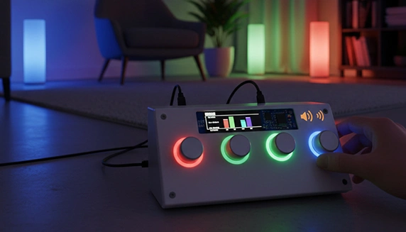 An intelligent ambient lighting system built on micro:bit. It allows users to manually mix Red, Green, and Blue light levels to create the perfect atmosphere for music or relaxation. The system includes built-in safety alerts via a buzzer to ensure brightness levels stay within an optimal range.