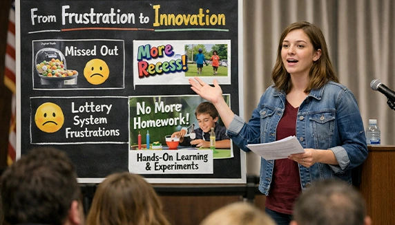 At Age 10 Pitching my student-designed school was a defining moment. I learned that my age doesn't limit the impact of my ideas. I’m now equipped with the public speaking skills and the entrepreneurial mindset to advocate for a future where education is designed for—and by—the students.